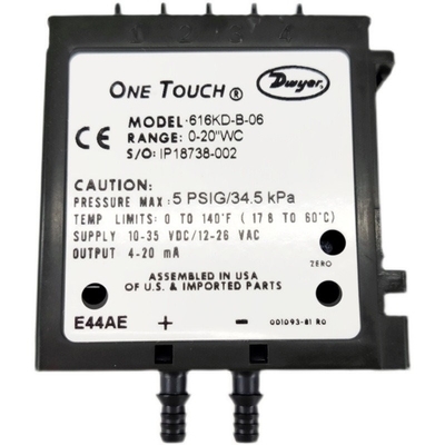 The Dwyer 616KD Series 4-20mA Differential Pressure Transmitter is a high-performance instrument designed for precise measurement of differential pressure in air, non-combustible gases, and compatible gases. Equipped with One-Touch® one-button digital calibration technology, it simplifies installation and maintenance, eliminating the need for traditional potentiometer adjustments or additional calibration tools. With multiple accuracy grades (±0.25% FS, ±1% FS, ±2% FS) and a wide range of pressure options, it caters to diverse industrial applications, from air handling unit filter monitoring to pharmaceutical equipment pressure control.